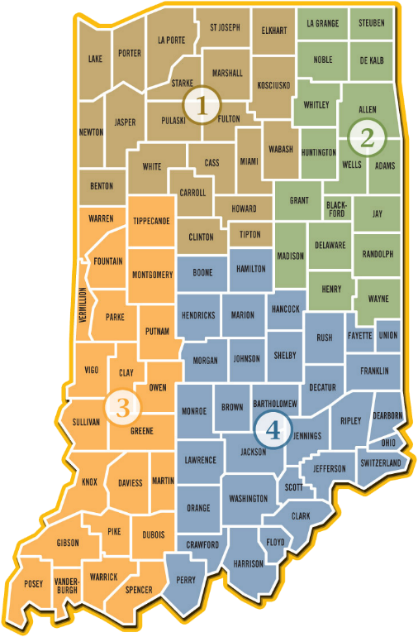 Both District 4 candidates, Chris Eck of Boggstown, Ind., and Roger Wenning of Greensburg, Ind., are up for re-election for their second terms. District 4 counties are Bartholomew, Boone, Brown, Clark, Crawford, Dearborn, Decatur, Fayette, Floyd, Franklin, Hamilton, Hancock, Harrison, Hendricks, Jackson, Jefferson, Jennings, Johnson, Lawrence, Marion, Monroe, Morgan, Ohio, Orange, Perry, Ripley, Rush, Scott, Shelby, Switzerland, Union and Washington.