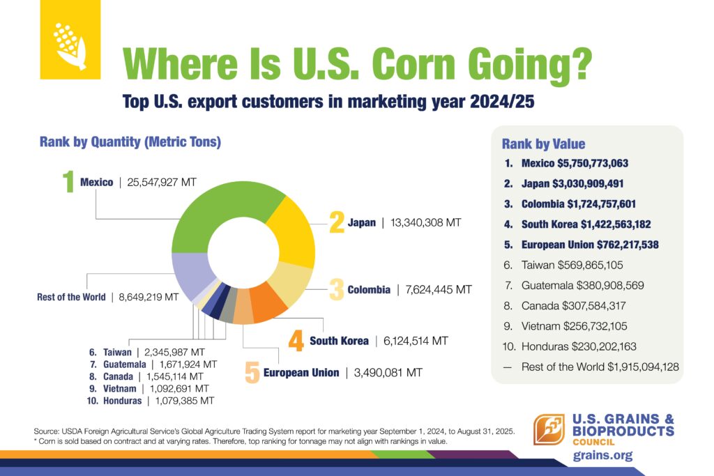Japan was the second largest market for U.S. corn, purchasing 13.3 MMT (524 million bushels) in 24/25, worth more than $3 billion.